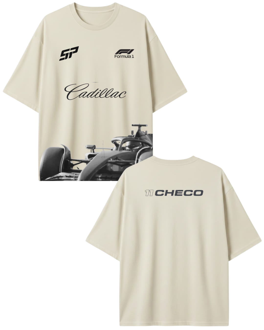 Playera Checo Pérez Cadillac Team F1 2026 Personalizada Color Hueso Oversize Algodón