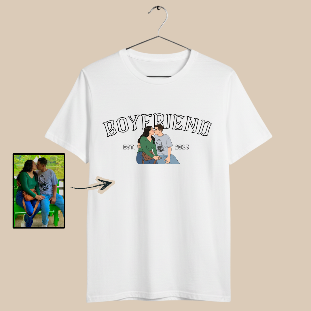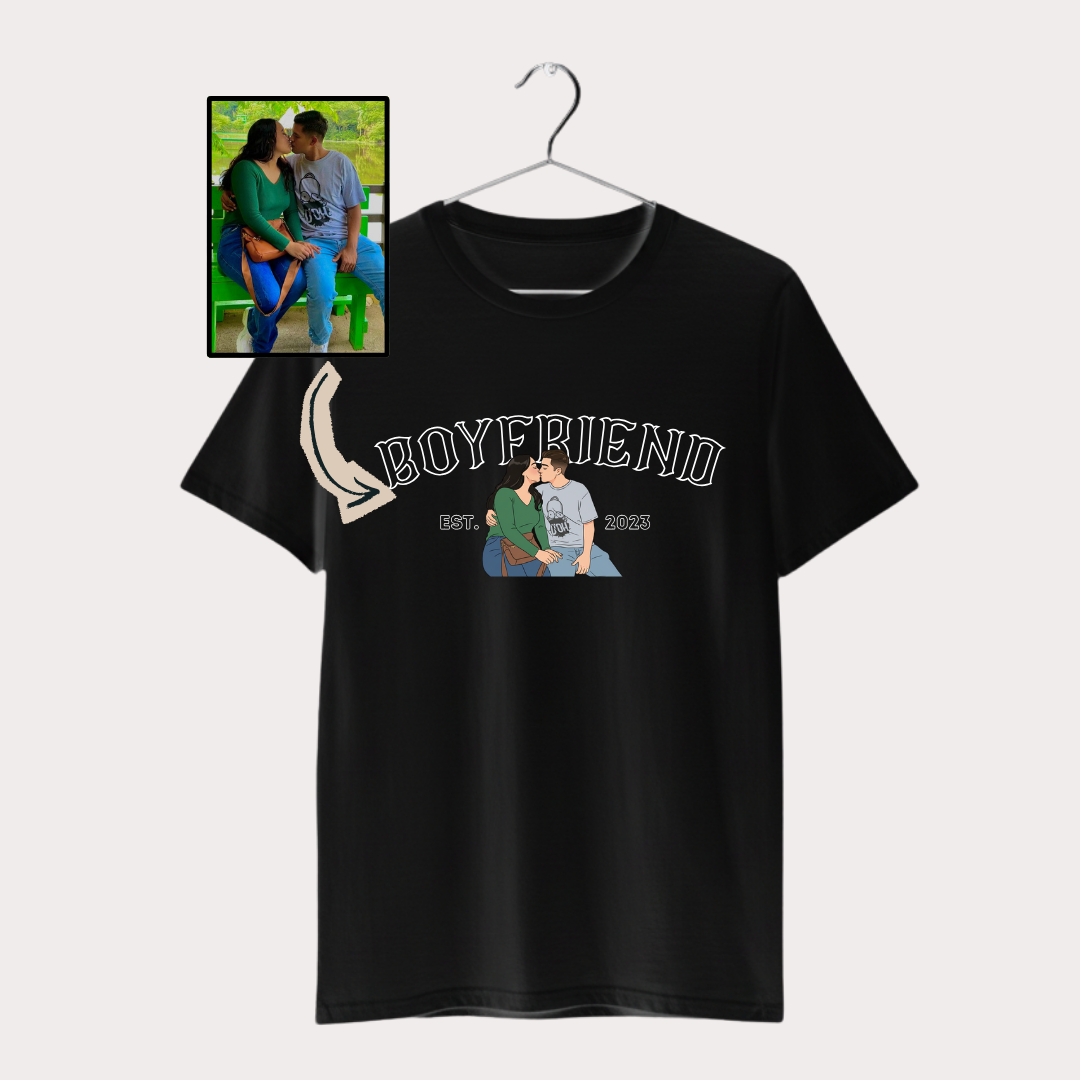 La personalización es el corazón de este producto. Puedes agregar su fotografía, fecha de aniversario y un letrero especial, convirtiendo cada playera en una pieza única. El diseño está pensado para que ambas prendas se complementen entre sí, creando un conjunto armonioso que representa la conexión entre ambos.