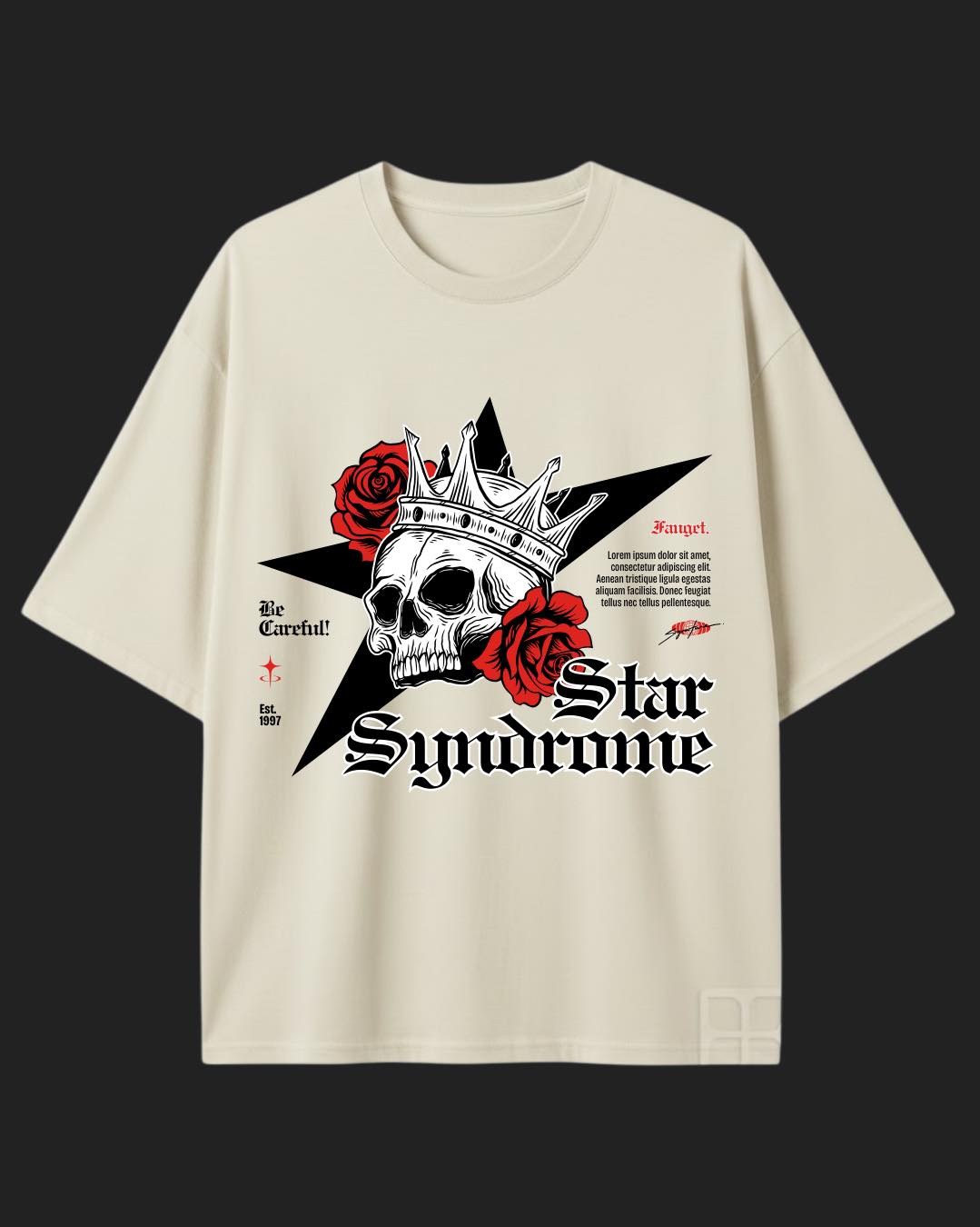 Playera Star Syndrome 100% algodón en blanco y hueso. Corte recto y oversize. Tallas S-XXL. Envío a todo México o entrega personal en Monterrey.