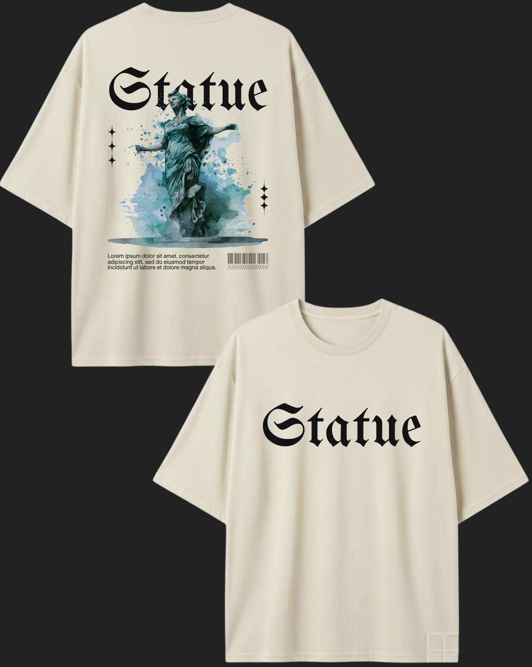 Playera «Statue» de corte oversize o recto. Disponible en color blanco y hueso, tallas S a XXL. Envíos a todo México y entregas en Monterrey