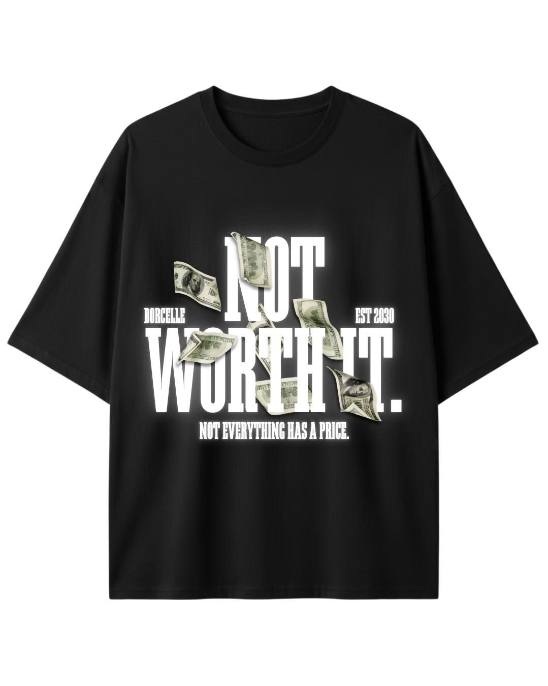 La Playera «Not Worth It» captura la esencia del streetwear contemporáneo. Con un potente mensaje visual que integra billetes y tipografía audaz, esta prenda destaca que «Not everything has a price». Es la elección perfecta para quienes buscan un look disruptivo sin sacrificar la comodidad de una prenda de algodón de alta calidad.