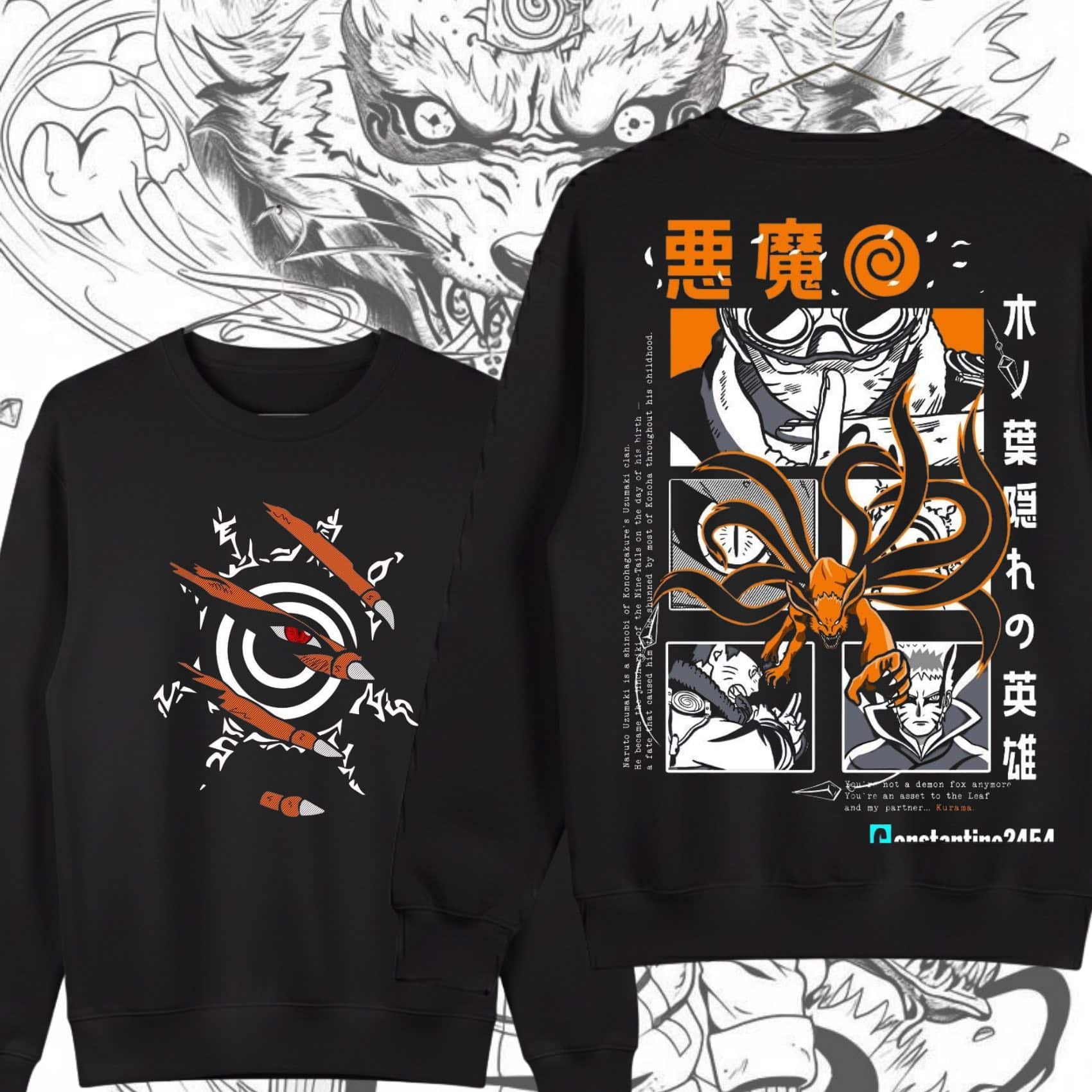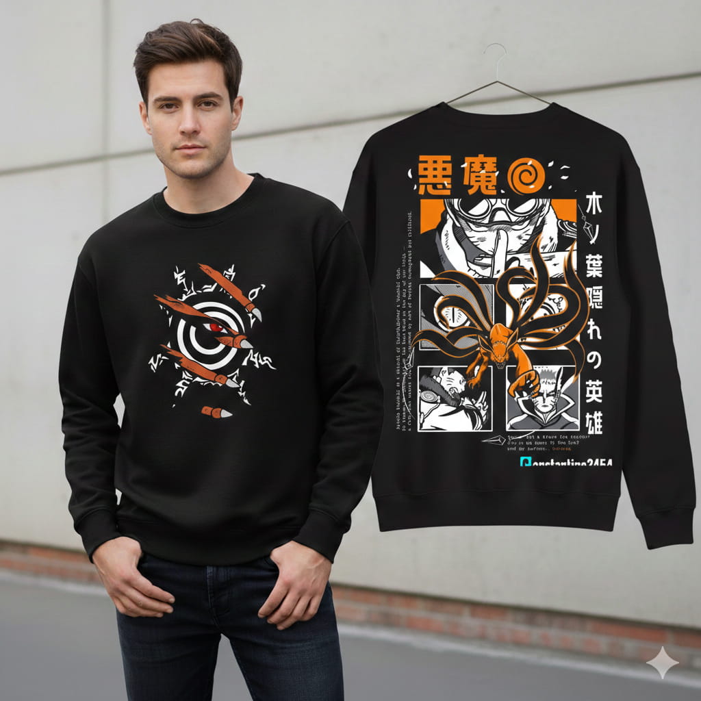 Si eres un verdadero fan de la voluntad de fuego, esta sudadera negra Naruto es la pieza definitiva para tu colección de streetwear. El diseño frontal presenta el icónico sello del zorro de las nueve colas, mientras que el arte posterior rinde homenaje a la evolución de Naruto Uzumaki y su vínculo inquebrantable con Kurama.