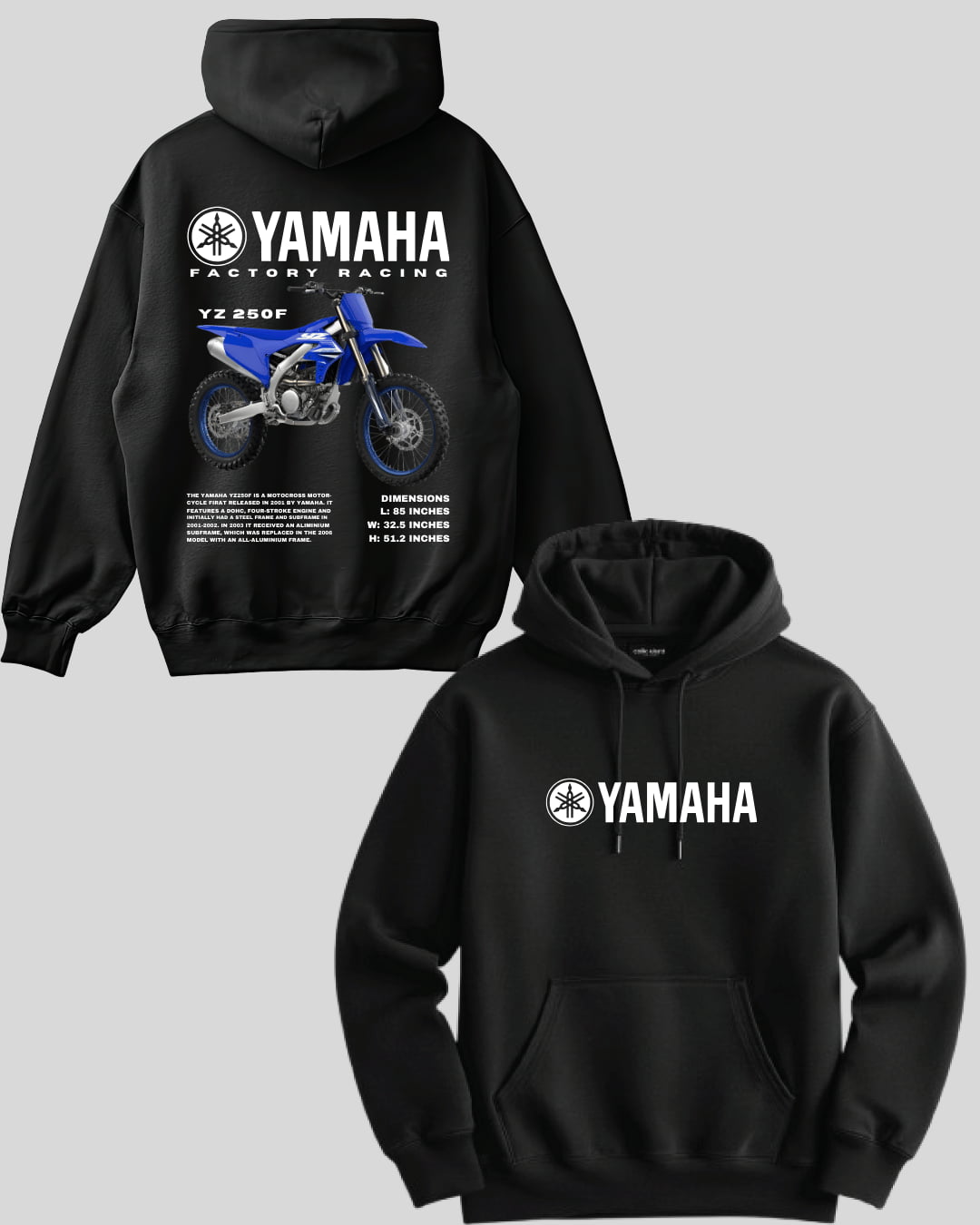 Lleva la pasión del motocross con esta sudadera Yamaha negra YZ250F. Algodón premium, tallas S a XXL. ¡Envíos a todo México o entrega en MTY!